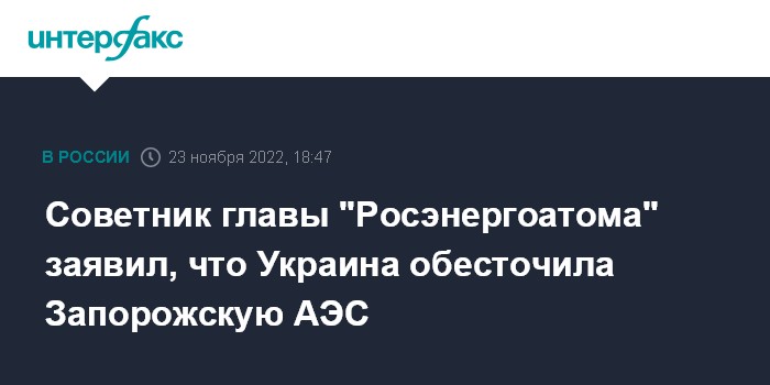 Москва. 23 ноября. INTERFAX.RU - Украинская сторона в среду прекратила в очередной раз подачу электроэнергии на Запорожскую АЭС в Энергодаре, сообщил "Интерфаксу" советник главы концерна "Росэнергоатом" Ренат Карчаа.