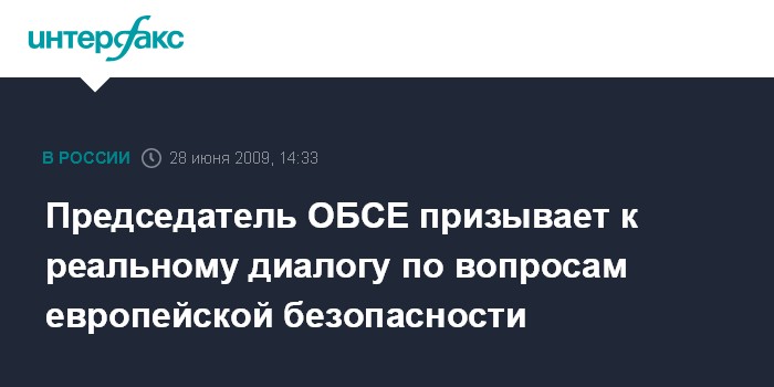 Москва. 28 июня. INTERFAX.RU - Государства-члены Организации по безопасности и сотрудничеству в Европе (ОБСЕ) должны перестать обмениваться взаимными обвинениями и вступить в реальный диалог по вопросам европейской безопасности, заявила действующий председатель ОБСЕ, глава МИД Греции Дора Бакоянни.