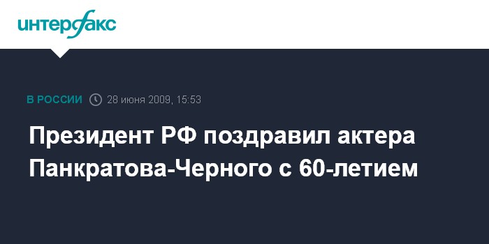 Москва. 28 июня. INTERFAX.RU - Президент России Дмитрий Медведев поздравил актера и режиссера Александра Панкратова-Черного с 60-летием, сообщила в воскресенье пресс-служба Кремля.