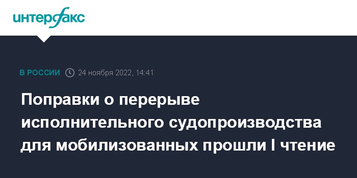 Поправки о перерыве исполнительного судопроизводства для мобилизованных прошли I чтение