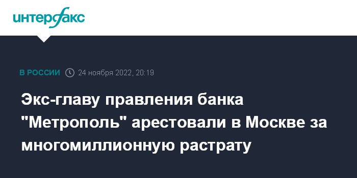 Экс-главу правления банка "Метрополь" арестовали в Москве за многомиллионную растрату