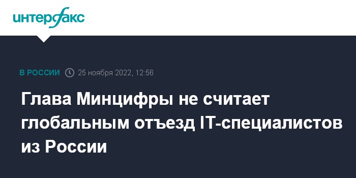 "Понятно, что последние события привели к тому, что значимая часть наших разработчиков, к сожалению, уехали из страны, и понятно, что это, наверно, одни из самых компетентных, профессиональных сотрудников, которые точно востребованы на международном рынке. Но я считаю, что в этом смысле масштаб отъезда не такой глобальный, ущерба отрасли он такого непоправимого не нанес", - сказал министр.
