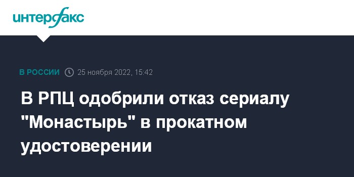 О решении Минкультуры отказать сериалу в прокатном удостоверении стало известно 24 ноября. В министерстве сослались на экспертную оценку церкви: "В РПЦ отметили, что сценарий дает искаженное представление о монашеской жизни в женских обителях РПЦ, соответственно, формирует неверное представление о русском православии"