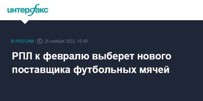 Москва. 25 ноября. INTERFAX.RU - Производство новых мячей для Российской премьер-лиги на сезон-2023/2024 планируется запустить в феврале 2023 года, сообщает пресс-служба РПЛ.