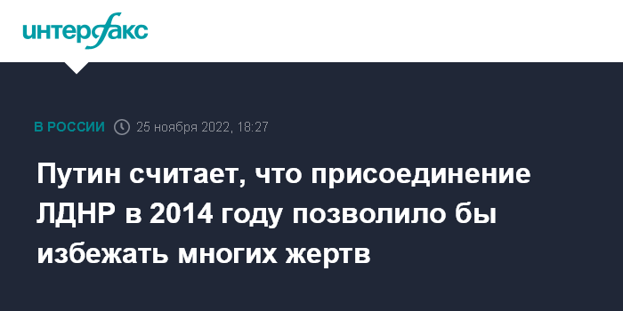 Путин считает, что присоединение ЛДНР в 2014 году позволило бы избежать многих жертв
