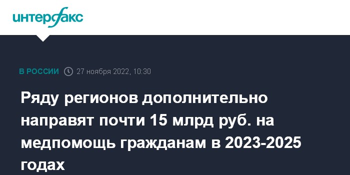 Ряду регионов дополнительно направят почти 15 млрд руб. на медпомощь гражданам в 2023-2025 годах