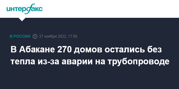 Москва. 27 ноября. INTERFAX.RU - Аварийные службы устраняют прорыв на трубопроводе в Абакане, из-за которого приостановлено теплоснабжение 270 многоквартирных домов и более десяти социально значимых объектов, сообщили "Интерфаксу" в пресс-службе ГУ МЧС России по Хакасии в воскресенье.