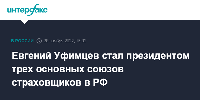 Евгений Уфимцев стал президентом трех основных союзов страховщиков в РФ