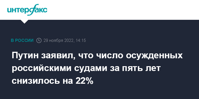Путин заявил, что число осужденных российскими судами за пять лет снизилось на 22%