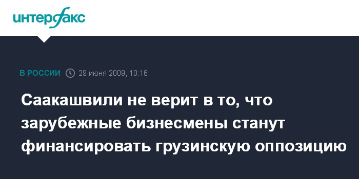 Москва. 29 июня. INTERFAX.RU - Президент Грузии Михаил Саакашвили выразил уверенность, что грузинская оппозиция не сможет найти себе спонсоров в лице бизнесменов в Грузии и за ее пределами.