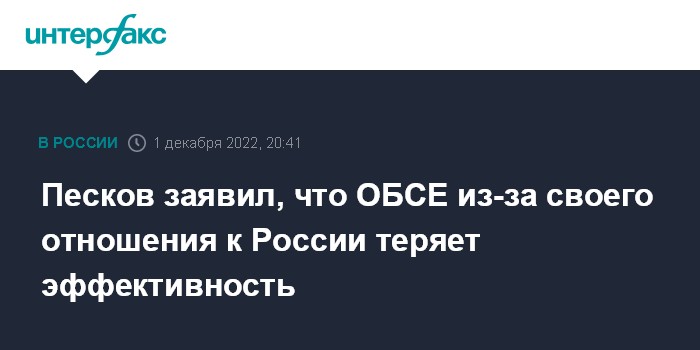 "В силу той позиции, которую ОБСЕ занимает, автоматически организация теряет свою эффективность. И организация теряет возможность не на словах, а на деле заниматься вопросами безопасности и сотрудничества в Европе", - ответил Песков.