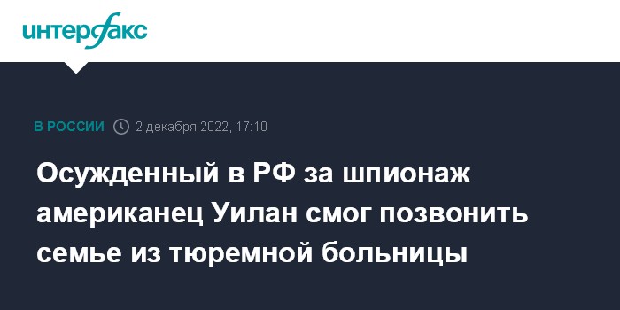Осужденный в РФ за шпионаж американец Уилан смог позвонить семье из тюремной больницы