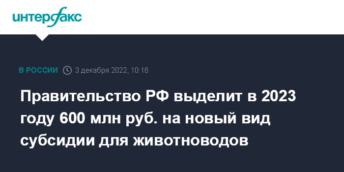 Правительство РФ выделит в 2023 году 600 млн руб. на новый вид субсидии для животноводов