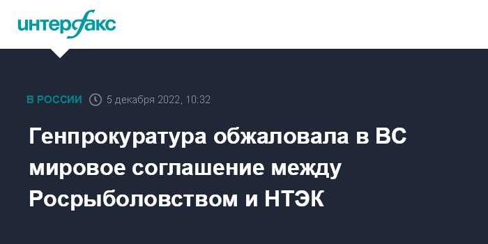 Генпрокуратура обжаловала в ВС мировое соглашение между Росрыболовством и НТЭК