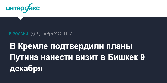 Москва. 6 декабря. INTERFAX.RU - Президент Владимир Путин в пятницу 9 декабря посетит Бишкек, как и планировал, сообщил журналистам его помощник Юрий Ушаков.