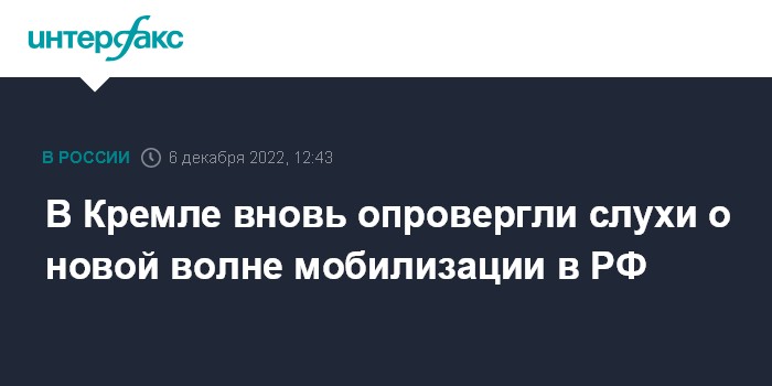 Москва. 6 декабря. INTERFAX.RU - Пресс-секретарь президента РФ Дмитрий Песков рекомендовал не обращать внимания на публикации о возможности второй волны мобилизации в РФ.