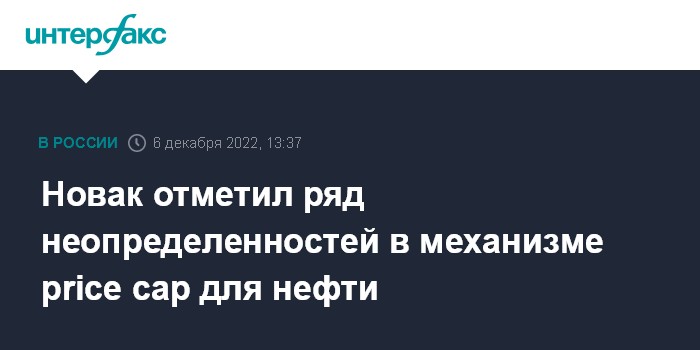 Москва. 6 декабря. INTERFAX.RU - Механизм потолка цен на нефть (price cap) даже после определения лимита содержит массу неопределенностей, заявил журналистам вице-премьер Александр Новак.