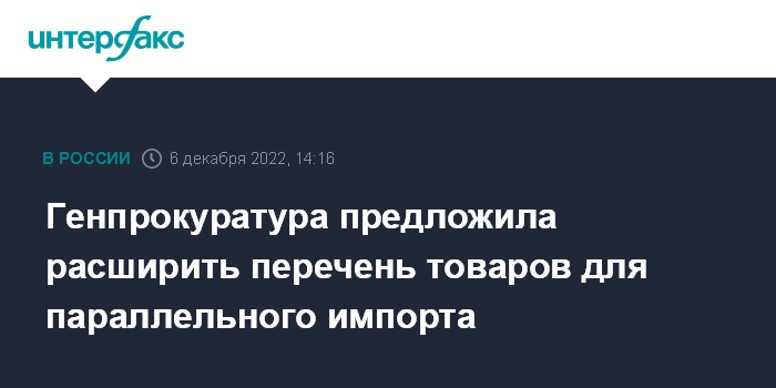 Генпрокуратура предложила расширить перечень товаров для параллельного импорта
