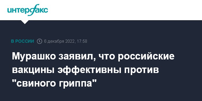 Москва. 6 декабря. INTERFAX.RU - Все отечественные антигриппозные вакцины эффективны против "свиного гриппа", рост заболеваемости которым отмечается в настоящее время, сообщил глава Минздрава РФ Михаил Мурашко.