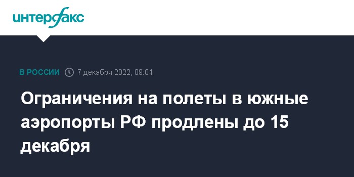 Ограничения на полеты в южные аэропорты РФ продлены до 15 декабря