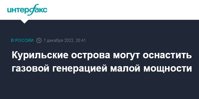 Курильские острова могут оснастить газовой генерацией малой мощности