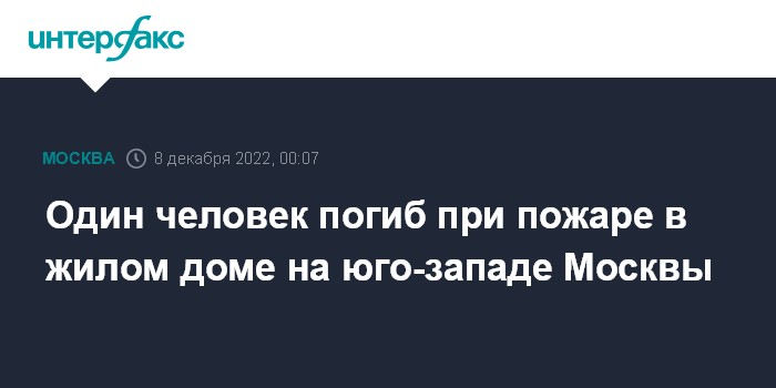 Один человек погиб при пожаре в жилом доме на юго-западе Москвы