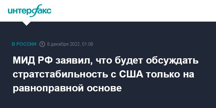 МИД РФ заявил, что будет обсуждать стратстабильность с США только на равноправной основе