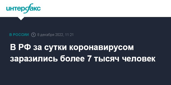 Москва. 8 декабря. INTERFAX.RU - Суточный прирост новых заболевших коронавирусной инфекцией в РФ составил более 7,4 тыс. случаев, скончались 54 пациента с COVID-19, следует из данных оперативного штаба, обнародованных в четверг.