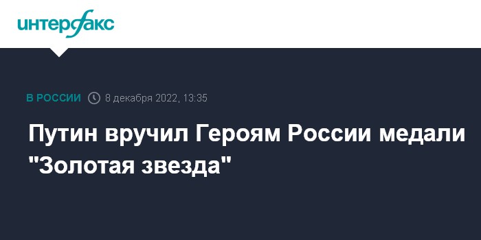 "Сегодня высшие государственные награды будут вручены военнослужащим, которые проявили исключительную доблесть и отвагу в ходе специальной военной операции и удостоены звания Герой России. Искренне благодарю вас за службу отечеству, за верность идеалам, которые всегда в любые времена объединяли Россию", - подчеркнул он.