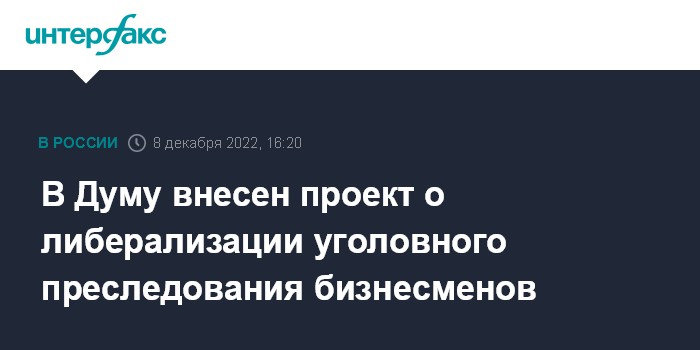Москва. 8 декабря. INTERFAX.RU - В Госдуму внесен правительственный проект закона с поправками в Уголовно-процессуальный кодекс о либерализации производства по уголовным делам, связанным с преступлениями экономической направленности.