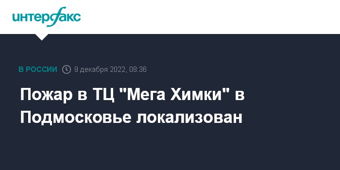 Москва. 9 декабря. INTERFAX.RU - Пожарные сумели локализовать пожар в торговом центре "Мега Химки" в Подмосковье, сообщили "Интерфаксу" в пресс-службе МЧС России в пятницу.