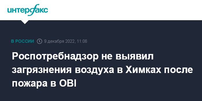 Москва. 9 декабря. INTERFAX.RU - Роспотребнадзор не выявил превышения предельно допустимой концентрации (ПДК) вредных веществ в воздхе в Химках в районе продолжающегося пожара на территории "Мега", сообщил телеканалу "Россия 24" начальник управления МЧС по Московской области Сергей Полетыкин.