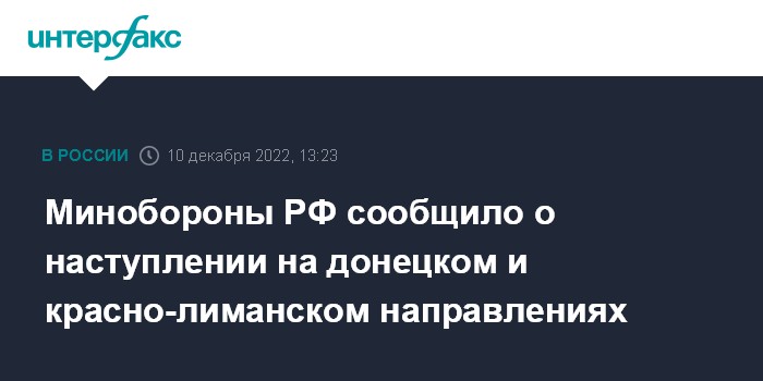Минобороны РФ сообщило о наступлении на донецком и красно-лиманском направлениях