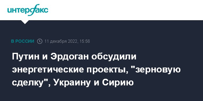 Путин и Эрдоган обсудили энергетические проекты, "зерновую сделку", Украину и Сирию