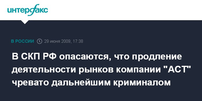 В СКП РФ опасаются, что продление деятельности рынков компании "АСТ" чревато дальнейшим криминалом