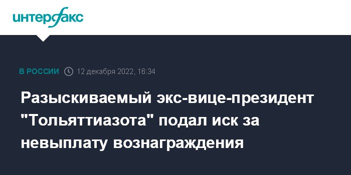 Разыскиваемый экс-вице-президент "Тольяттиазота" подал иск за невыплату вознаграждения