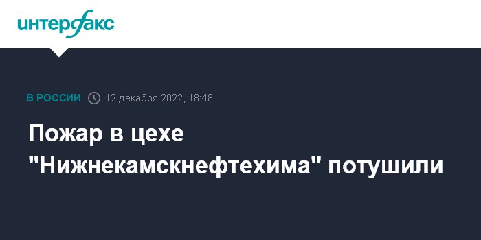 Москва. 12 декабря. INTERFAX.RU - В Нижнекамске потушили пожар в цехе по выделению каучуков "Нижнекамскнефтехима, сообщили в управлении МЧС по Татарстану.
