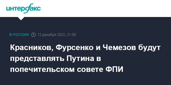 Красников, Фурсенко и Чемезов будут представлять Путина в попечительском совете ФПИ