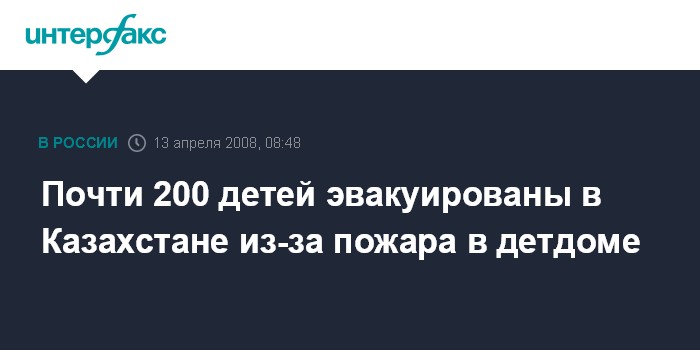 Астана. 13 апреля. ИНТЕРФАКС-КАЗАХСТАН - В Алматы (Алма-Аты) пожарные эвакуировали почти 200 детей во время возгорания детского дома №1.
