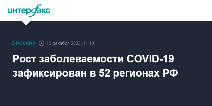 Москва. 13 декабря. INTERFAX.RU - Рост заболеваемости коронавирусом в РФ регистрируется в 52 регионах страны, в том числе Москве и Санкт-Петербурге, сообщили в Роспотребнадзоре.