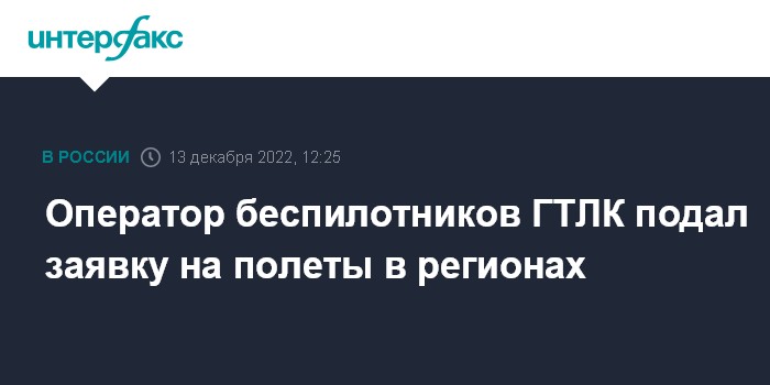 Оператор беспилотников ГТЛК подал заявку на полеты в регионах