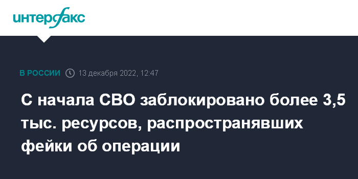Москва. 13 декабря. INTERFAX.RU - Национальный антитеррористический комитет (НАК) сообщил о блокировке более 3 тыс. интернет-ресурсов, распространявших ложную информацию о спецоперации РФ на Украине.