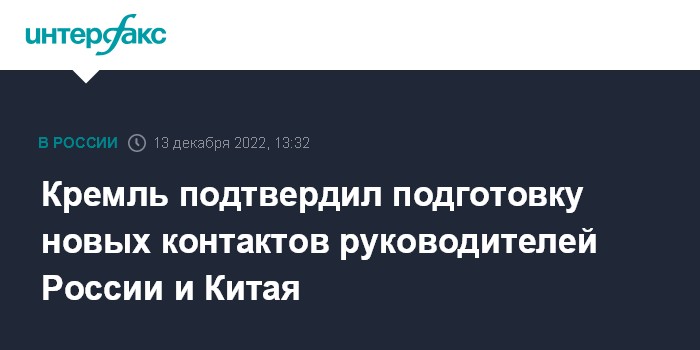Кремль подтвердил подготовку новых контактов руководителей России и Китая