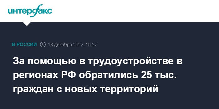 За помощью в трудоустройстве в регионах РФ обратились 25 тыс. граждан с новых территорий