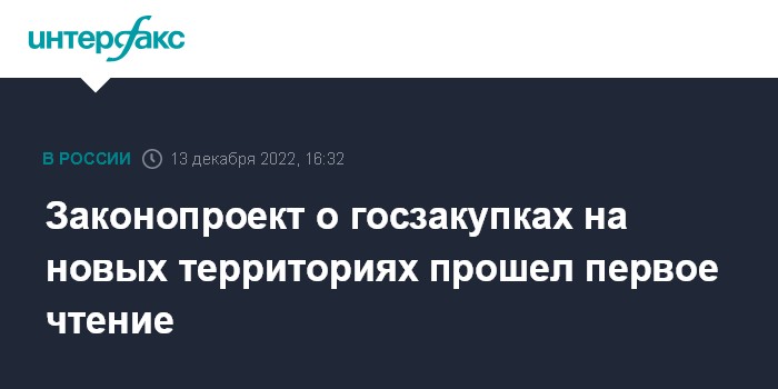 Правительство внесло его в палату 24 ноября. Предполагается, что он поможет урегулировать переход новых регионов с 2023 до 2026 года на правила, изложенные в 44-ФЗ, говорилось в пояснительной записке к документу.