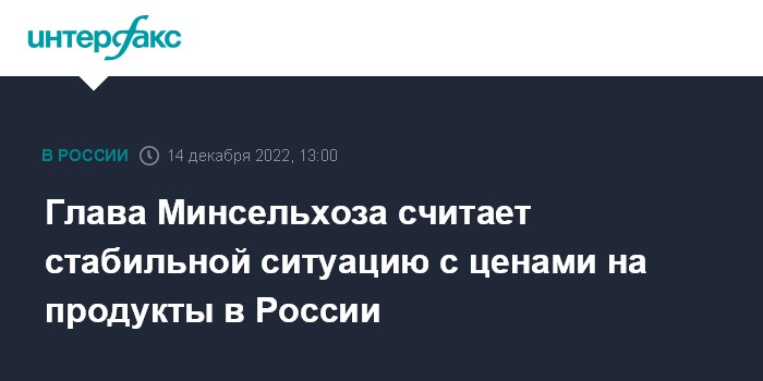 Глава Минсельхоза считает стабильной ситуацию с ценами на продукты в России