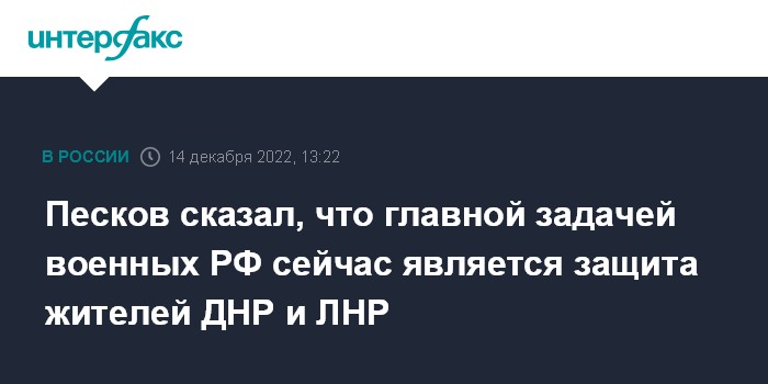 Песков сказал, что главной задачей военных РФ сейчас является защита жителей ДНР и ЛНР