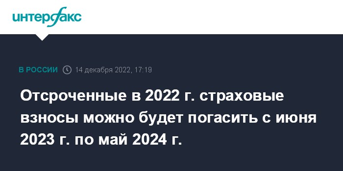 Отсроченные в 2022 г. страховые взносы можно будет погасить с июня 2023 г. по май 2024 г.