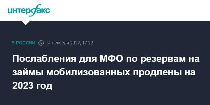Послабления для МФО по резервам на займы мобилизованных продлены на 2023 год