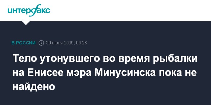 Москва. 30 июня. INTERFAX.RU - Спасатели продолжают поиски тела главы Минусинска (Красноярский край) Анатолия Кекина, утонувшего во время рыбалки на Енисее 27 июня.